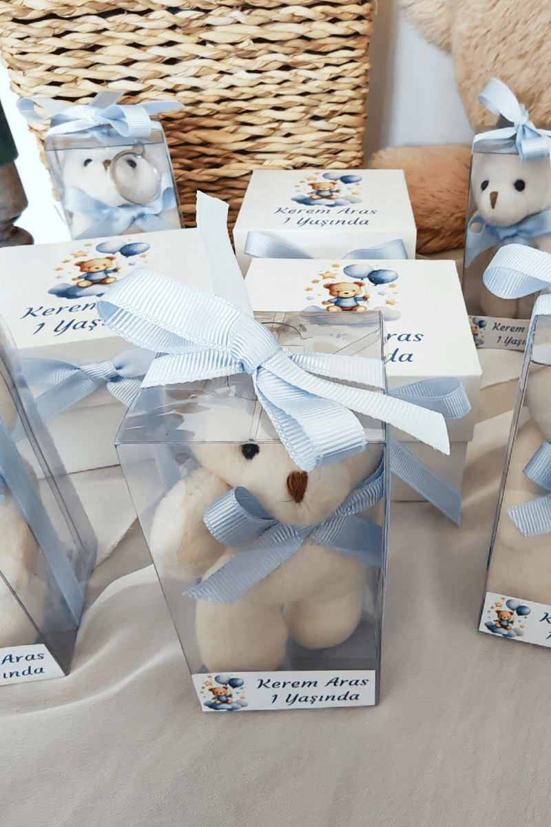Kutulu Peluş Ayıcık Anahtarlık Erkek Bebek Hediyelik