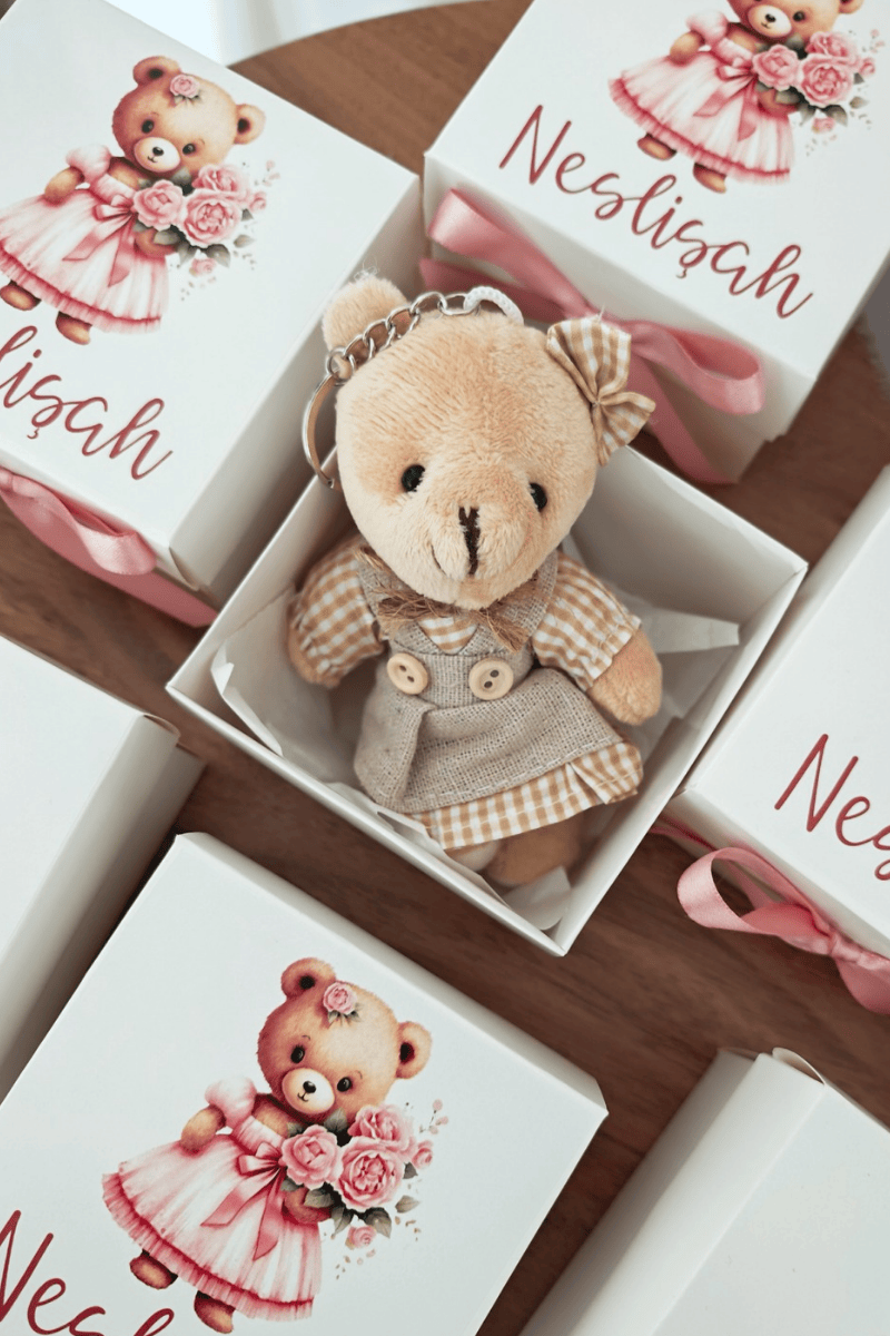 Peluş ayıcık anahtarlık beyaz kutu