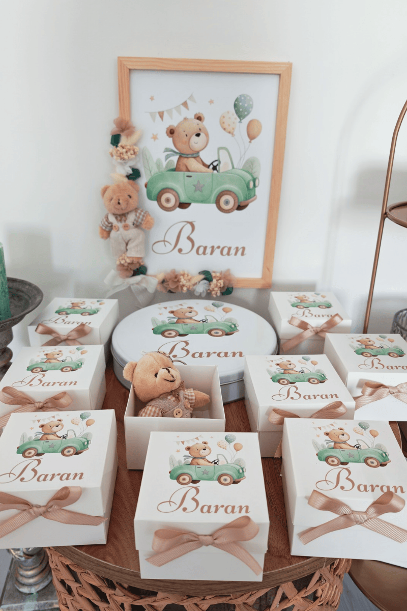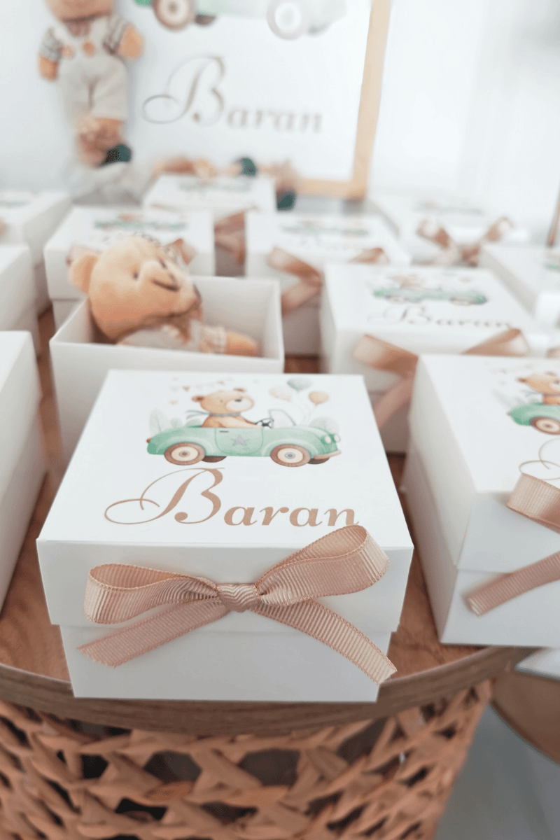 Beyaz Kutulu Elbiseli Peluş Ayıcık Anahtarlık Erkek Bebek Hediyelik