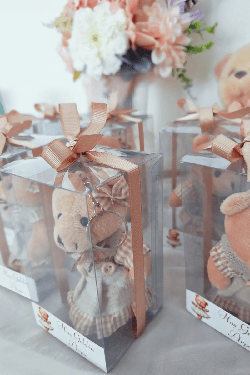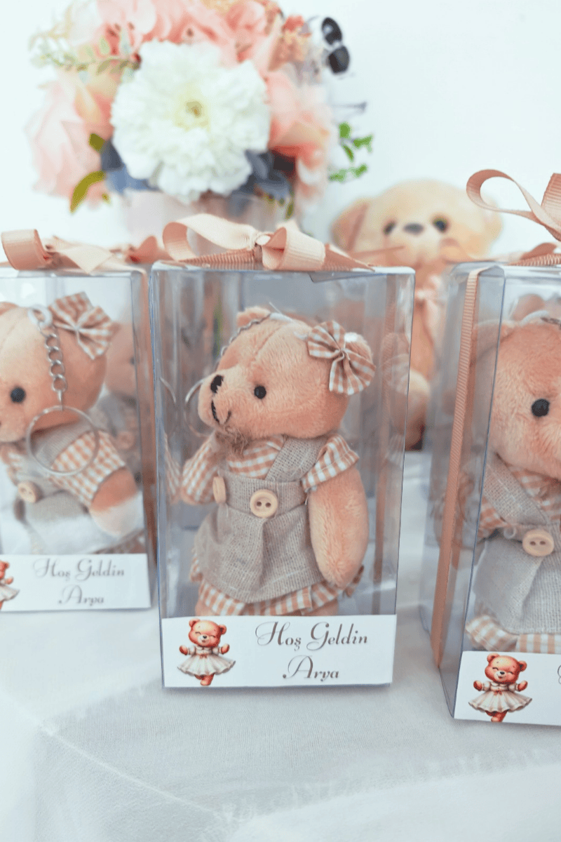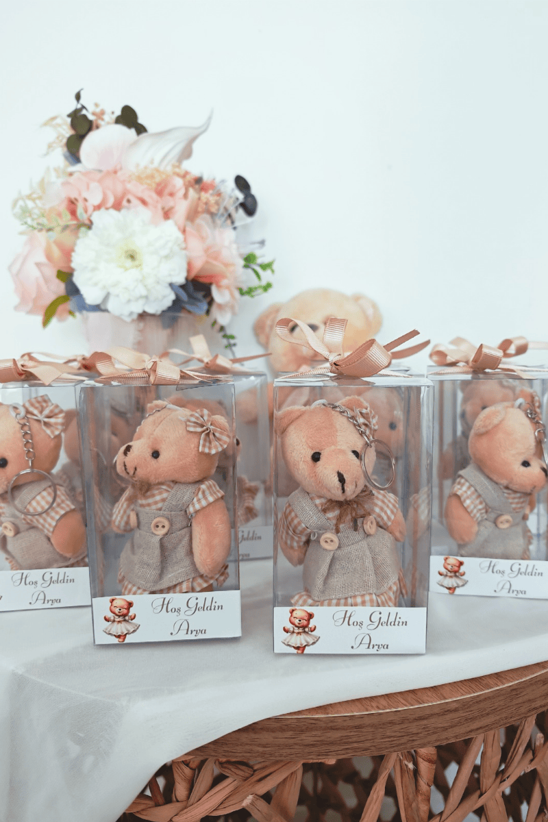 Elbiseli peluş ayıcık anahtarlık, doğum,