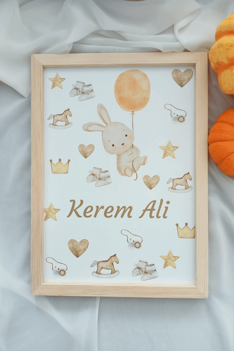 Tavşan Tasarımlı Erkek Bebek Kapı Süsü / Pano