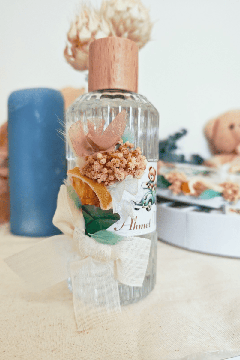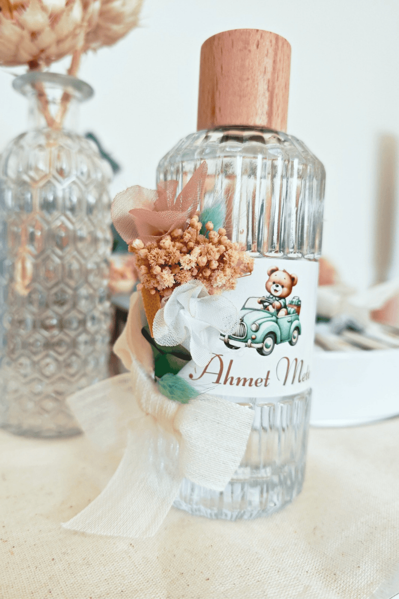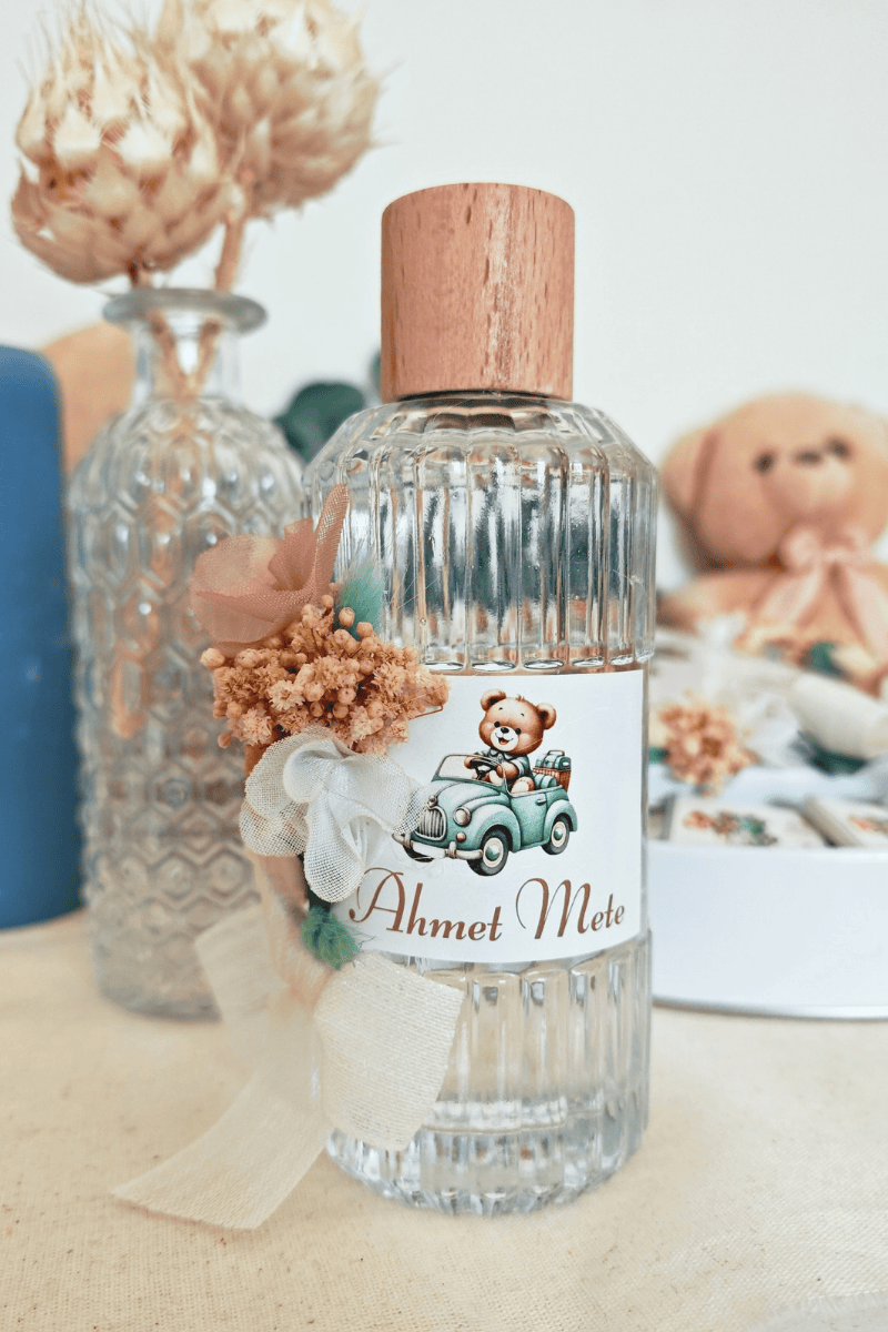 Erkek Bebek Ayıcık Tasarımlı Çiçek Süslemeli Büyük Boy Kolonya
