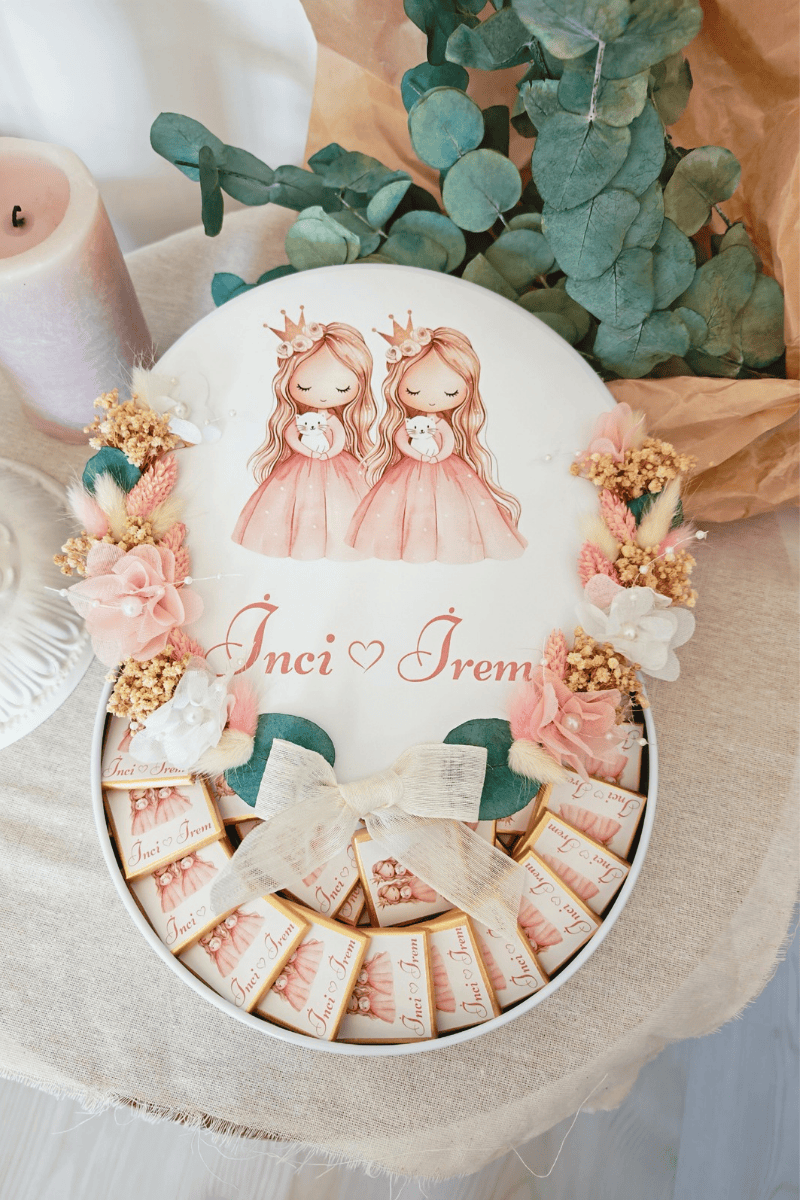 Çiçek süslemeli metal kutuda sunulan