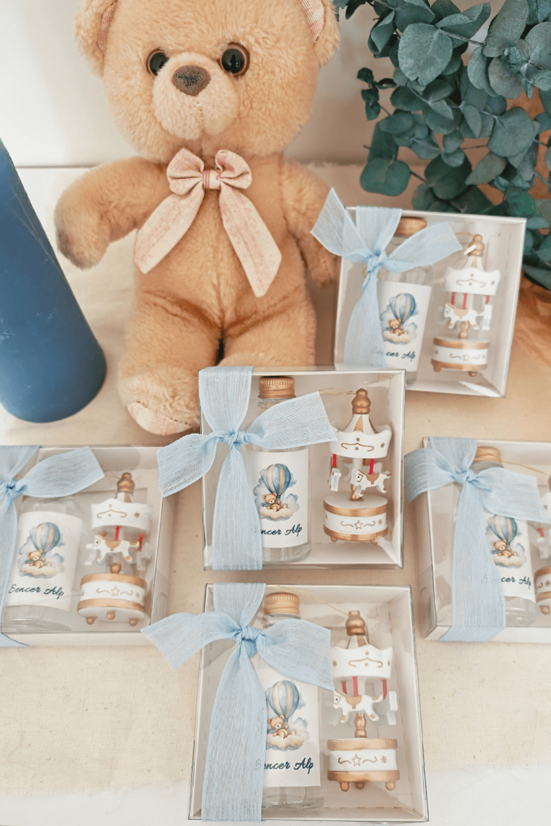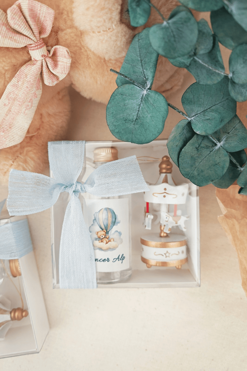 Atlı Karınca & Cam Şişe Kolanya Kutulu Set Bebek Hediyelik - Özel Kurdeleli