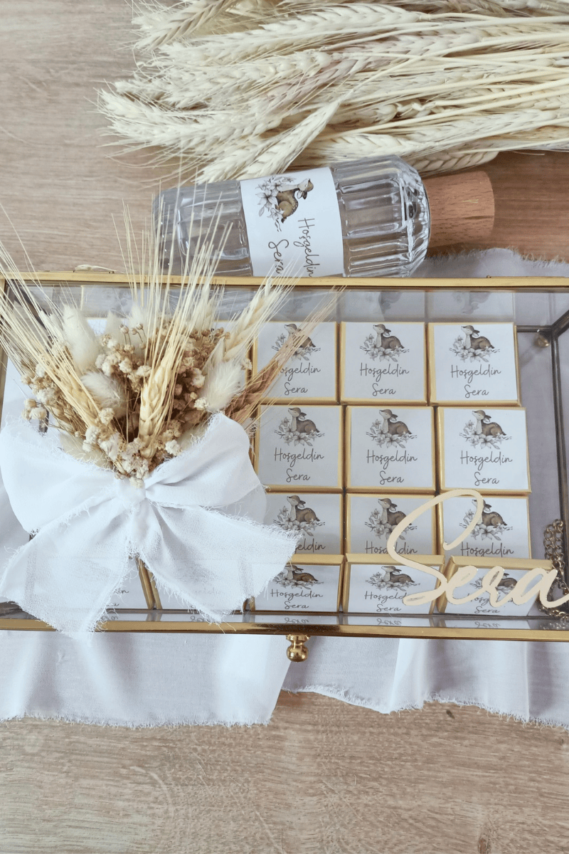 Çiçek Süslemeli Cam Kutuda 75' li Madlen Çikolata