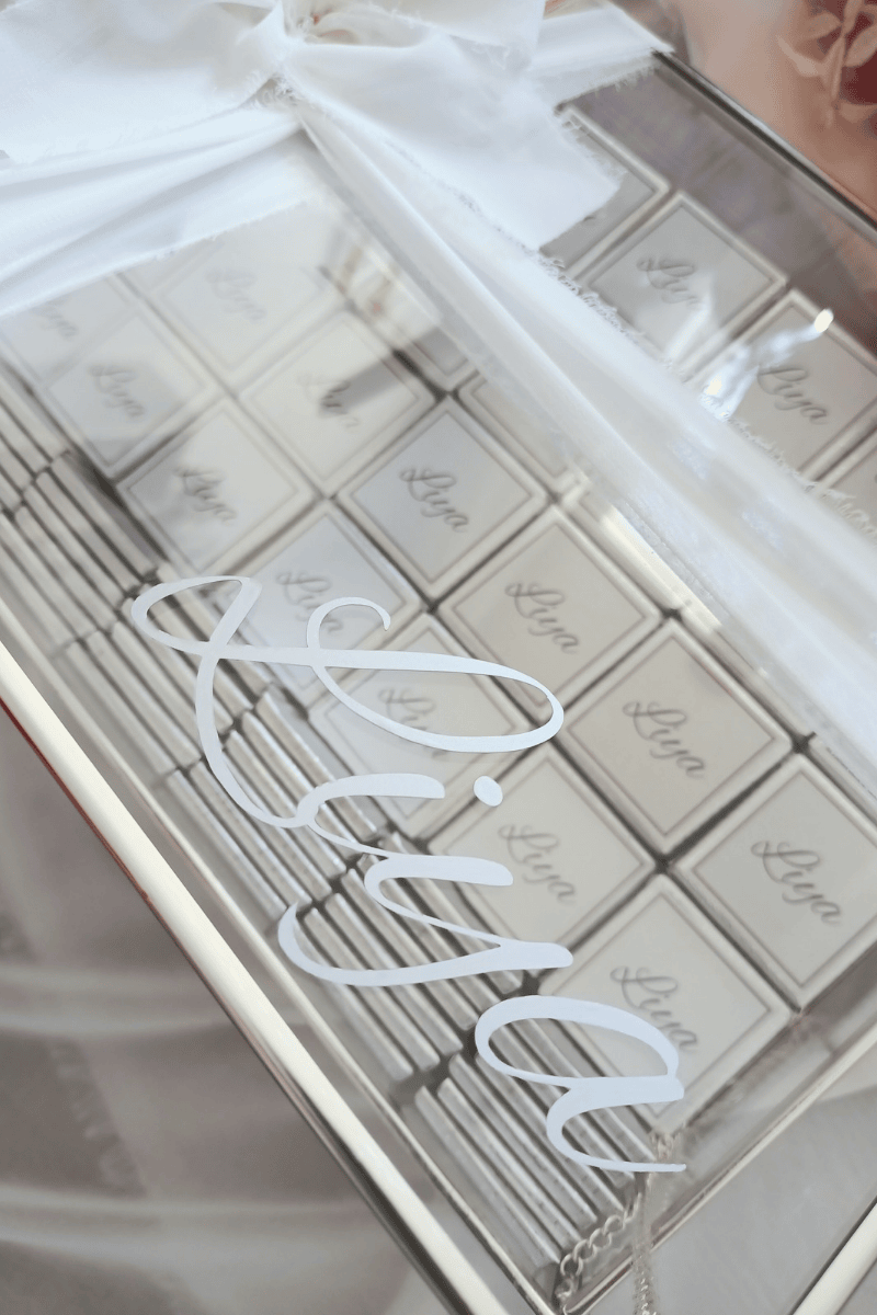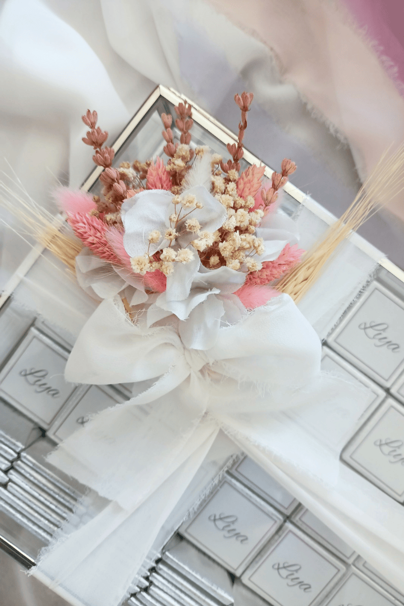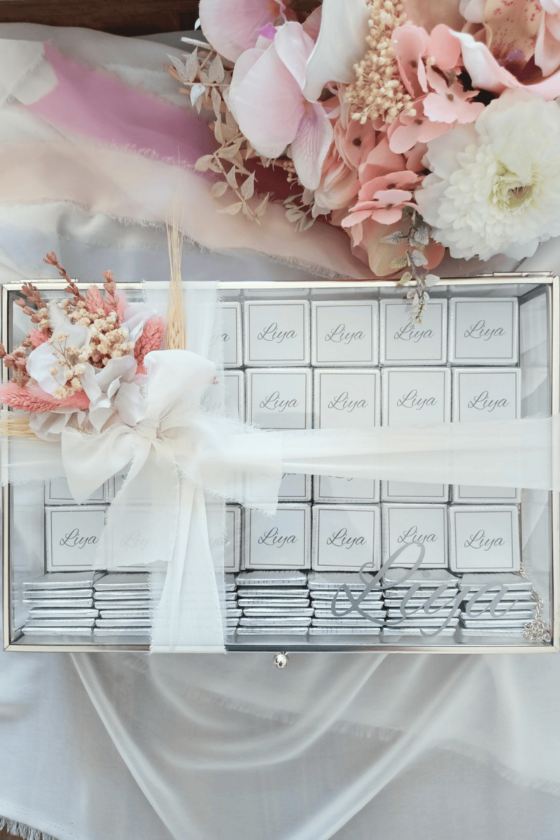 Çiçek Süslemeli Cam Kutuda 130' lu Madlen Çikolata