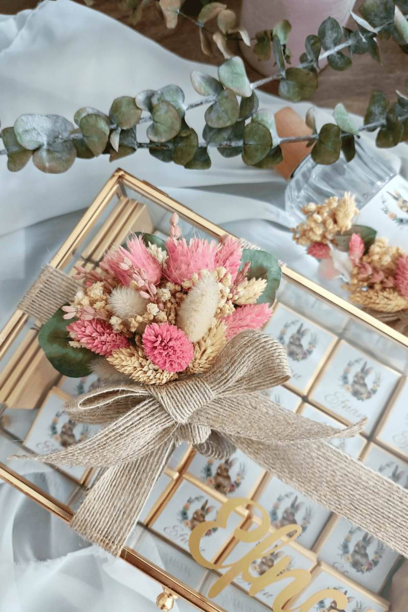 Çiçek Süslemeli Cam Kutuda 50'li Madlen Çikolata