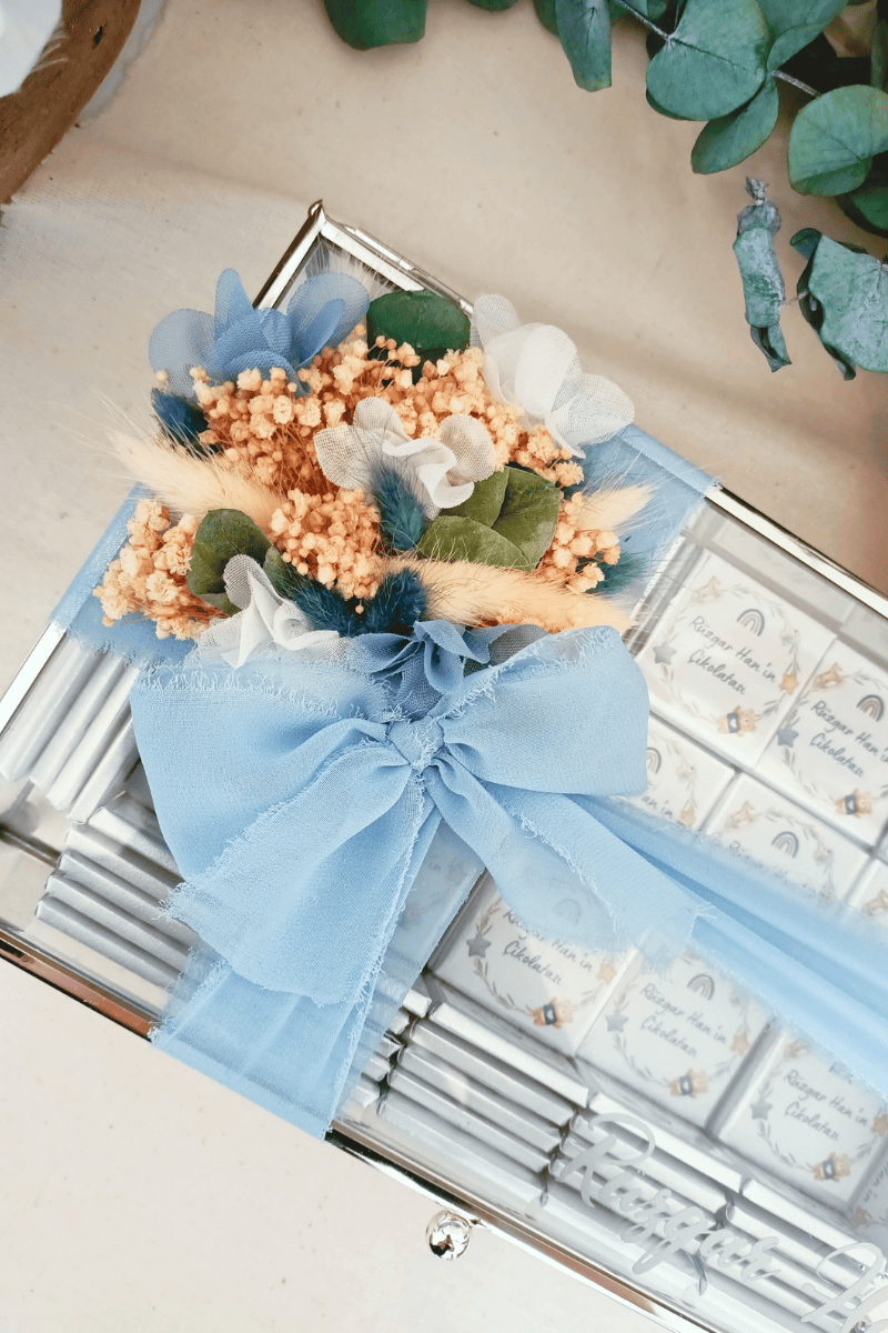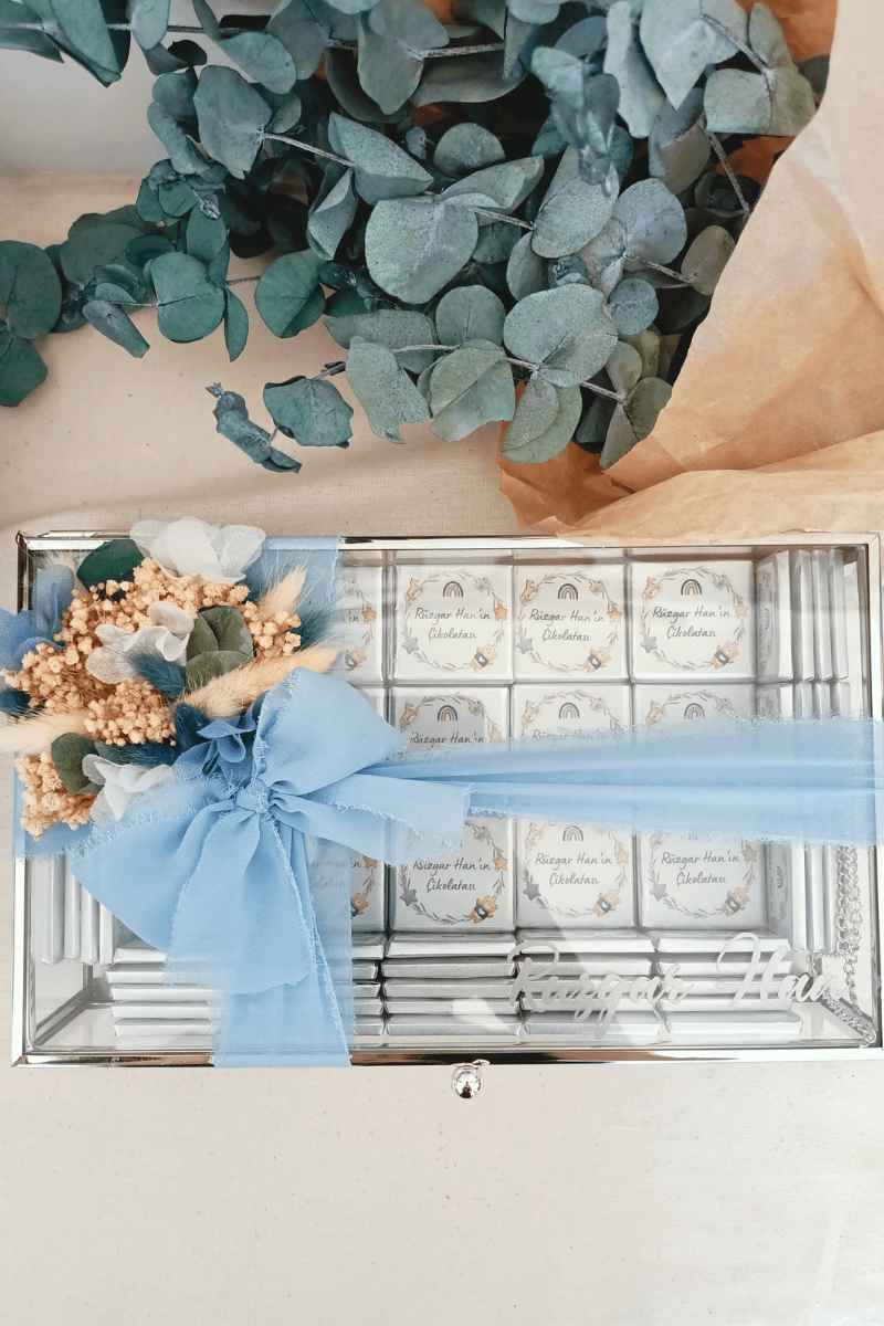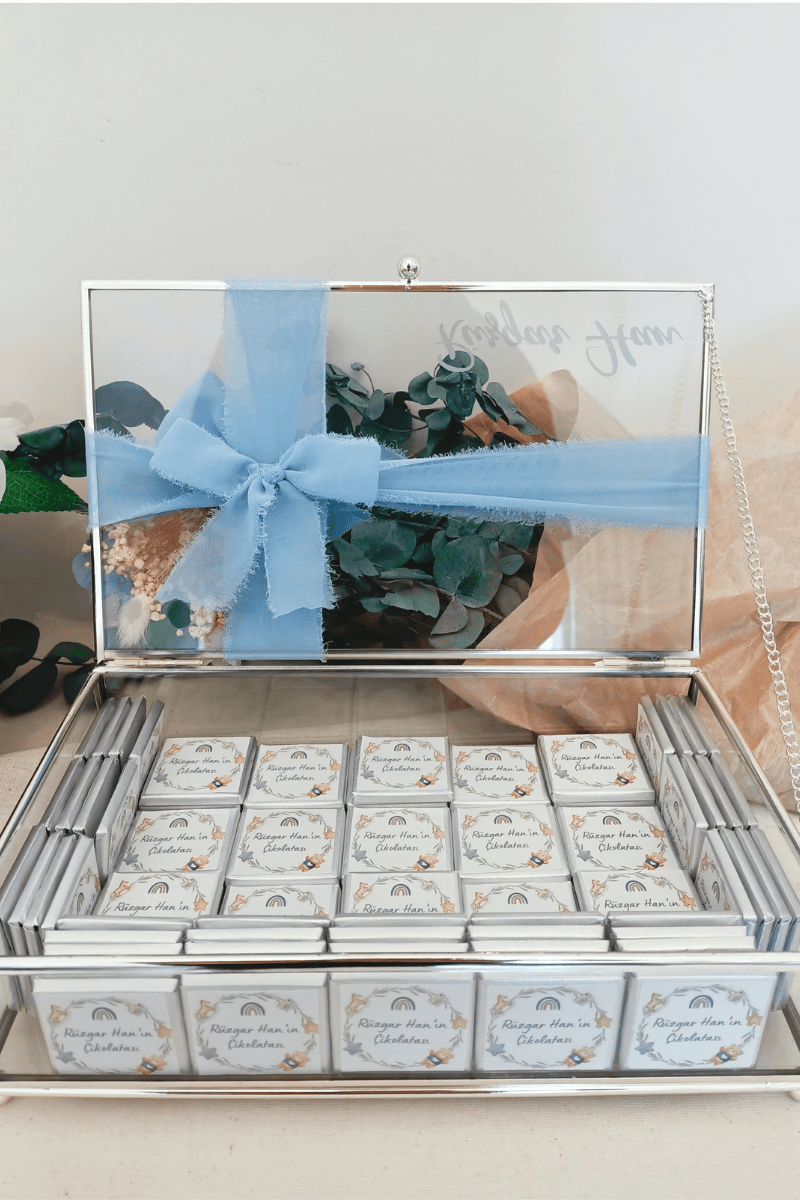Çiçek Süslemeli Cam Kutuda 80' li Madlen Çikolata