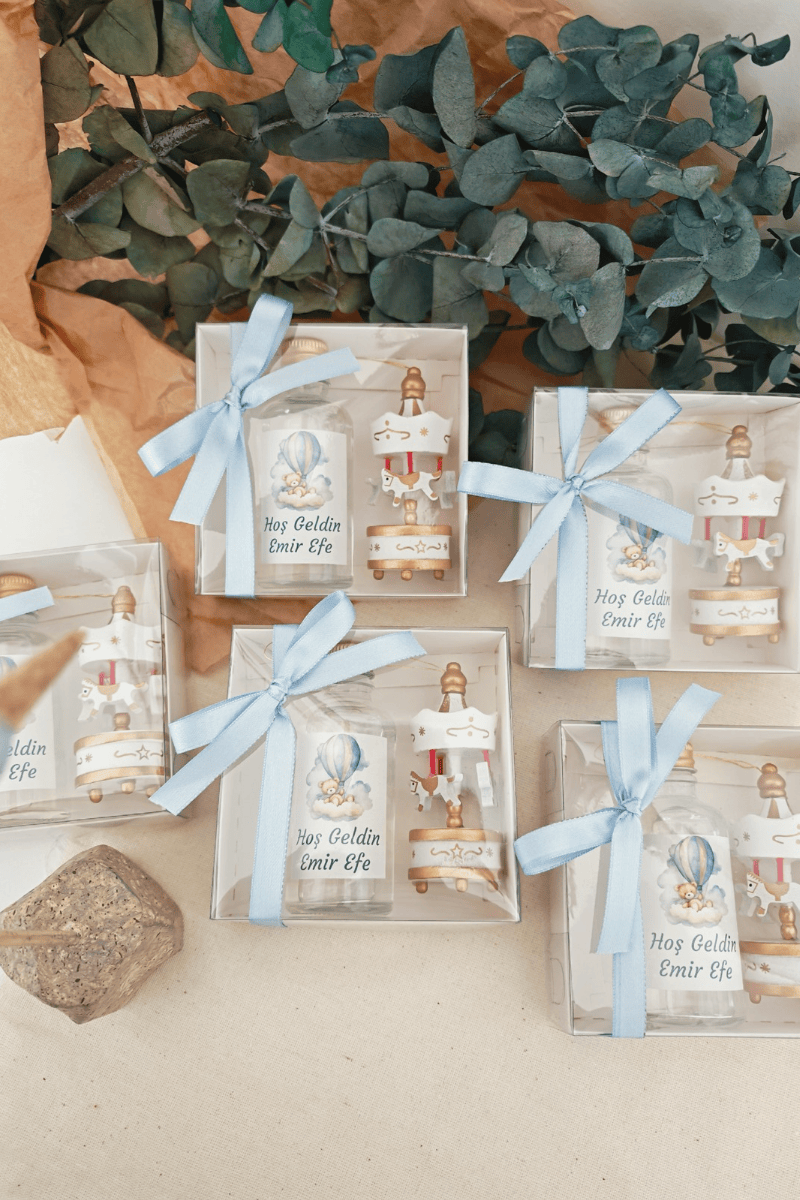 Atlı Karınca & Cam Şişe Kolanya Kutulu Set Erkek Bebek Hediyelik