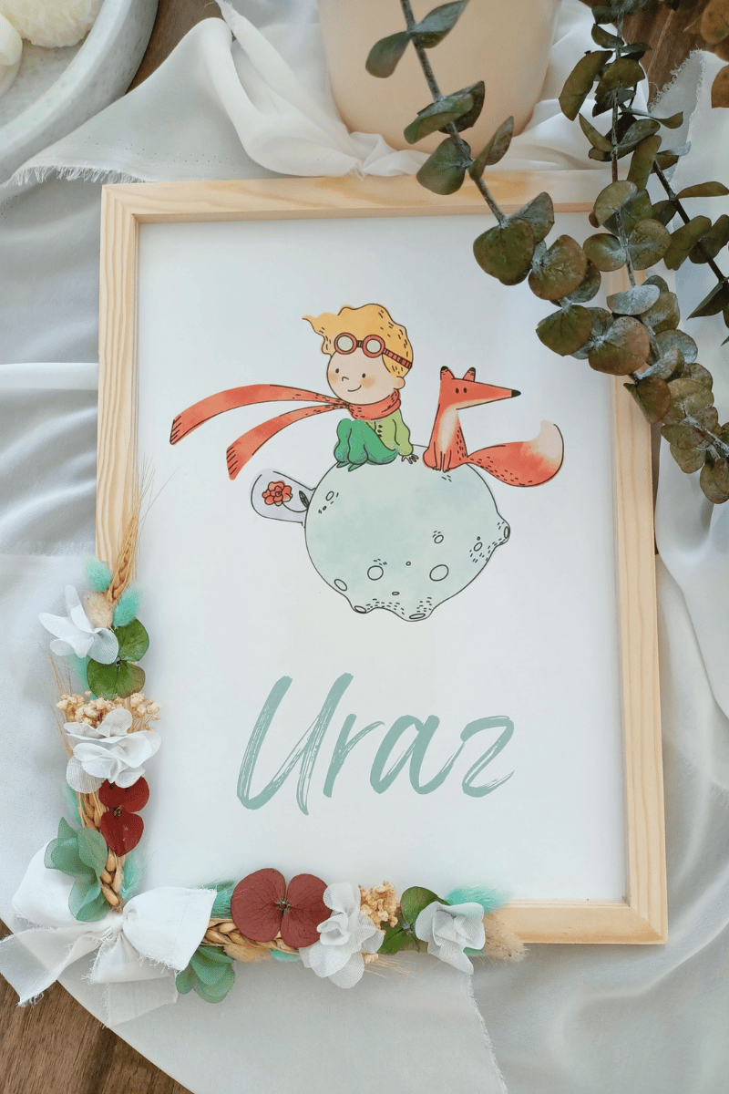Küçük Prens Tasarımlı Çiçek Süslemeli Bebek Kapı Süsü / Pano