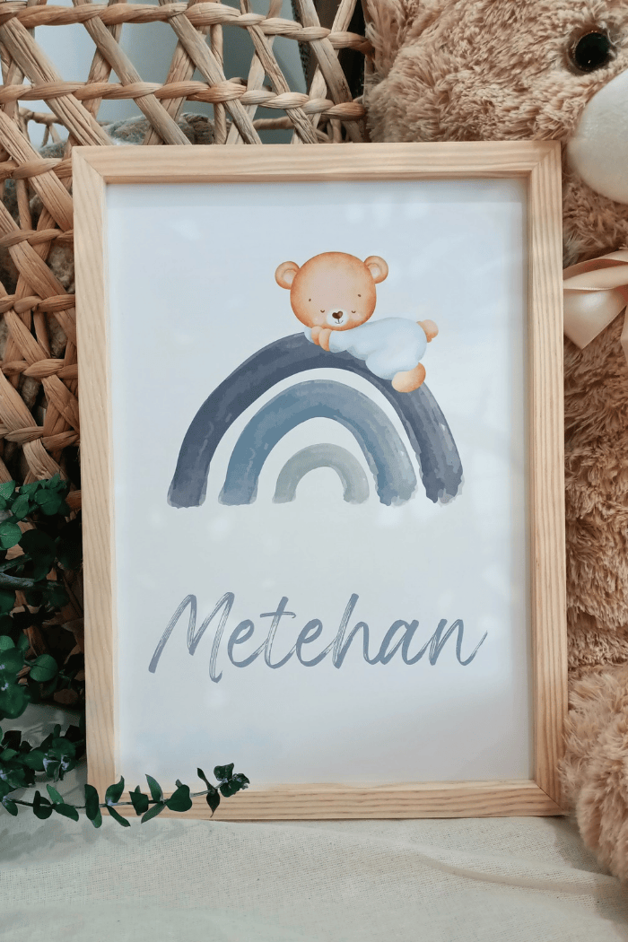 Gökkuşağı - Ayıcık Tasarımlı Erkek Bebek Kapı Süsü / Pano