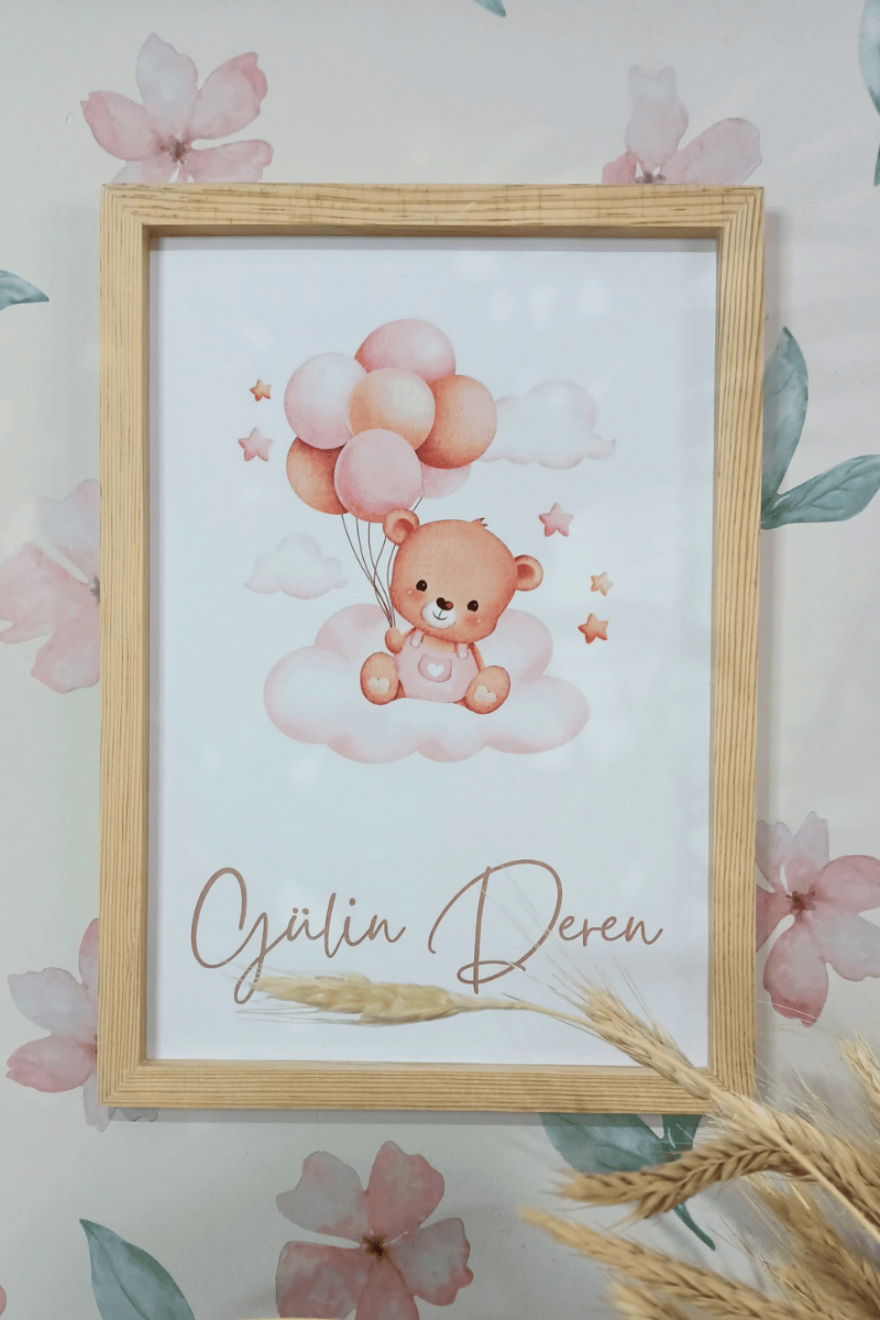 Ayıcık Tasarımlı Kız Bebek Kapı Süsü / Pano