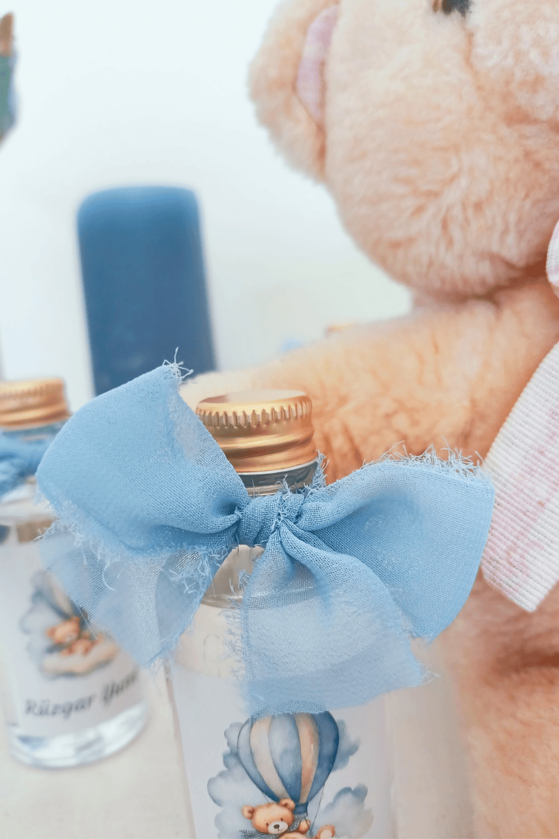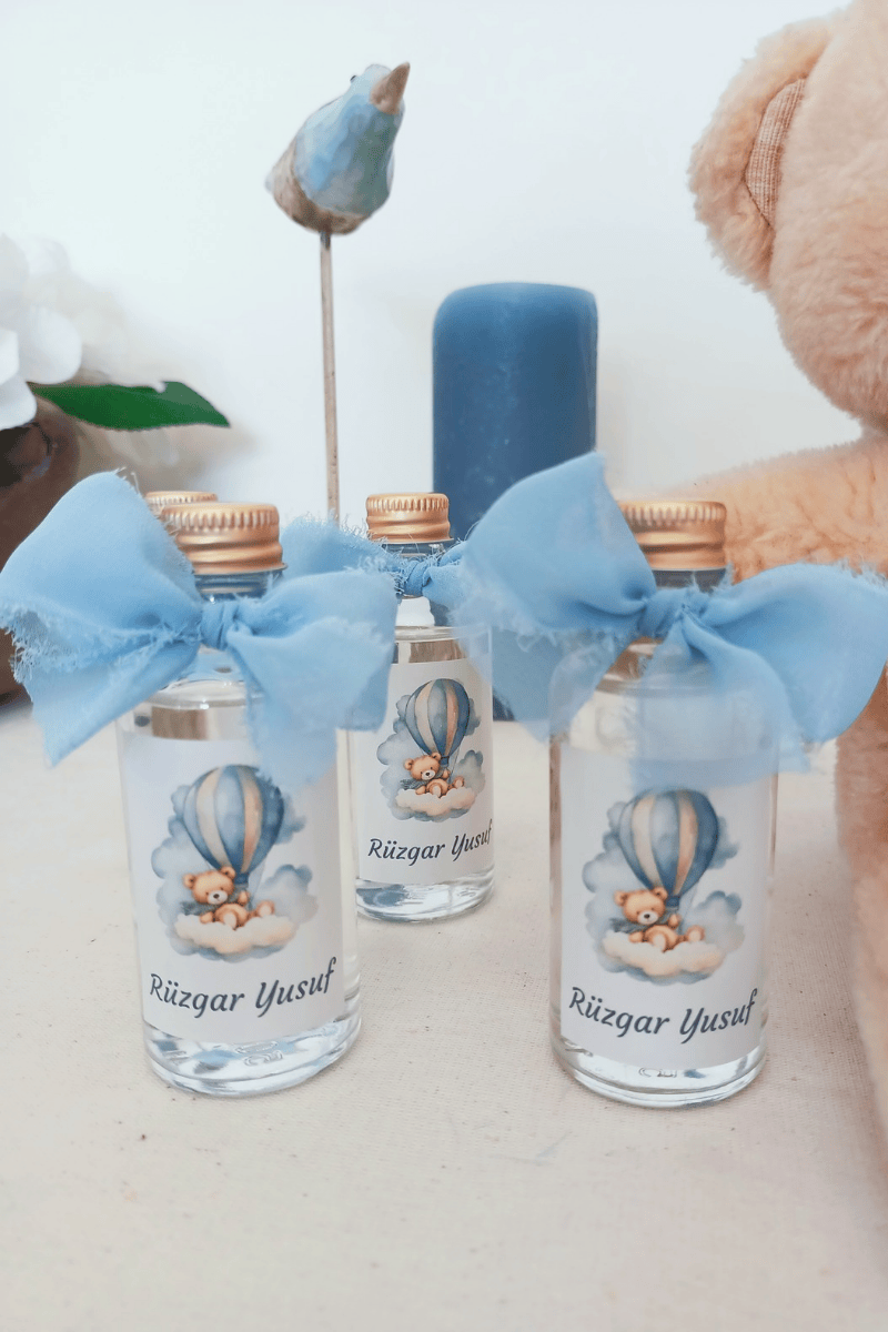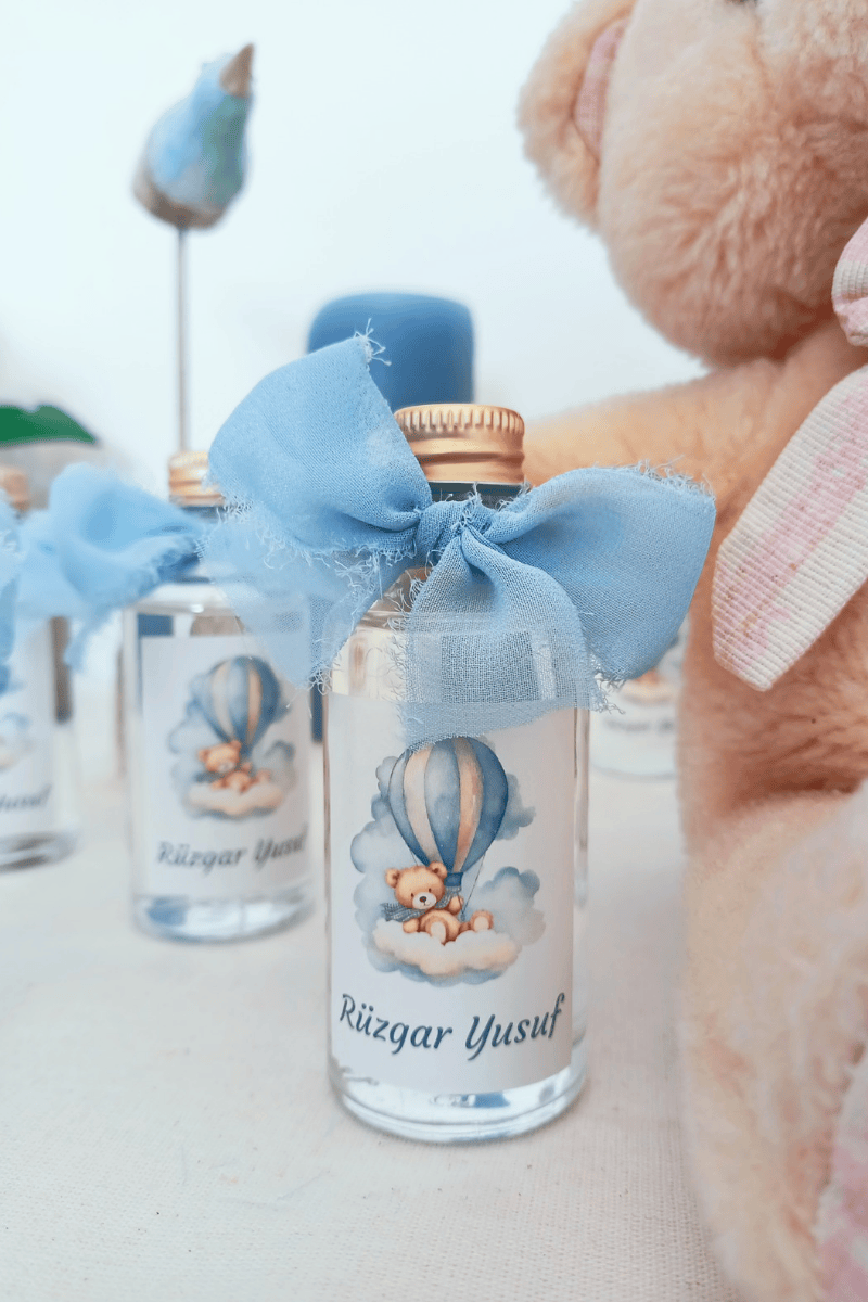 Cam Şişe Kolonya Erkek Bebek Hediyelik - Özel Kurdeleli