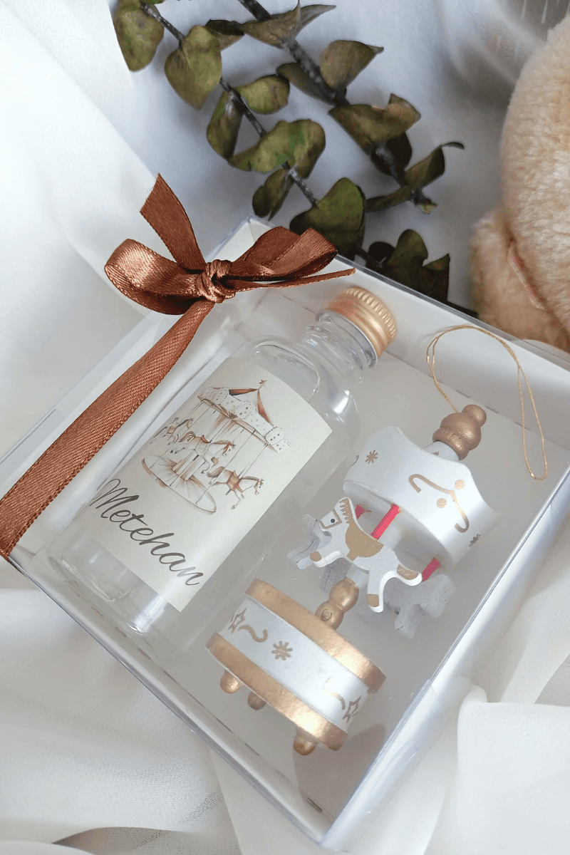 Atlı Karınca & Cam Şişe Kolonya Kutulu Set Erkek Bebek Hediyelik