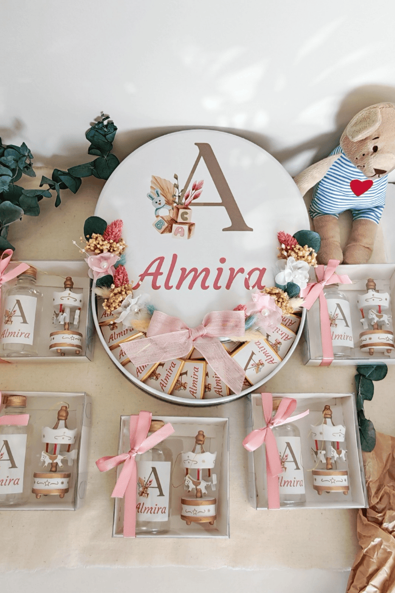 Atlı Karınca & Cam Şişe Kolanya Kutulu Set Kız Bebek Hediyelik