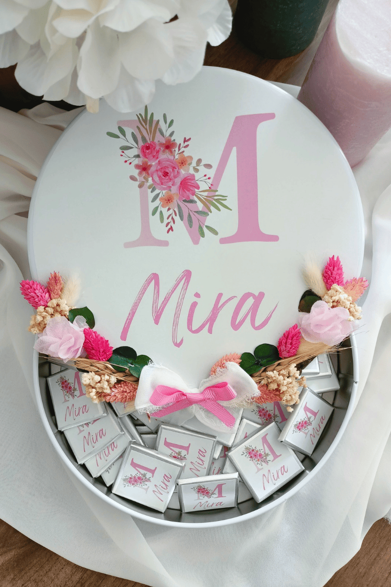 Çiçek süslemeli metal kutuda sunulan