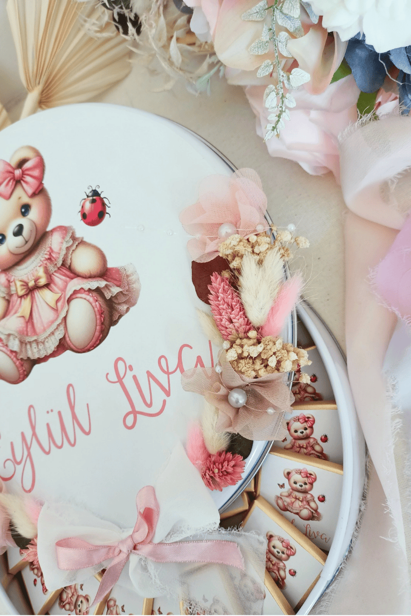 Çiçek süslemeli metal kutuda sunulan
