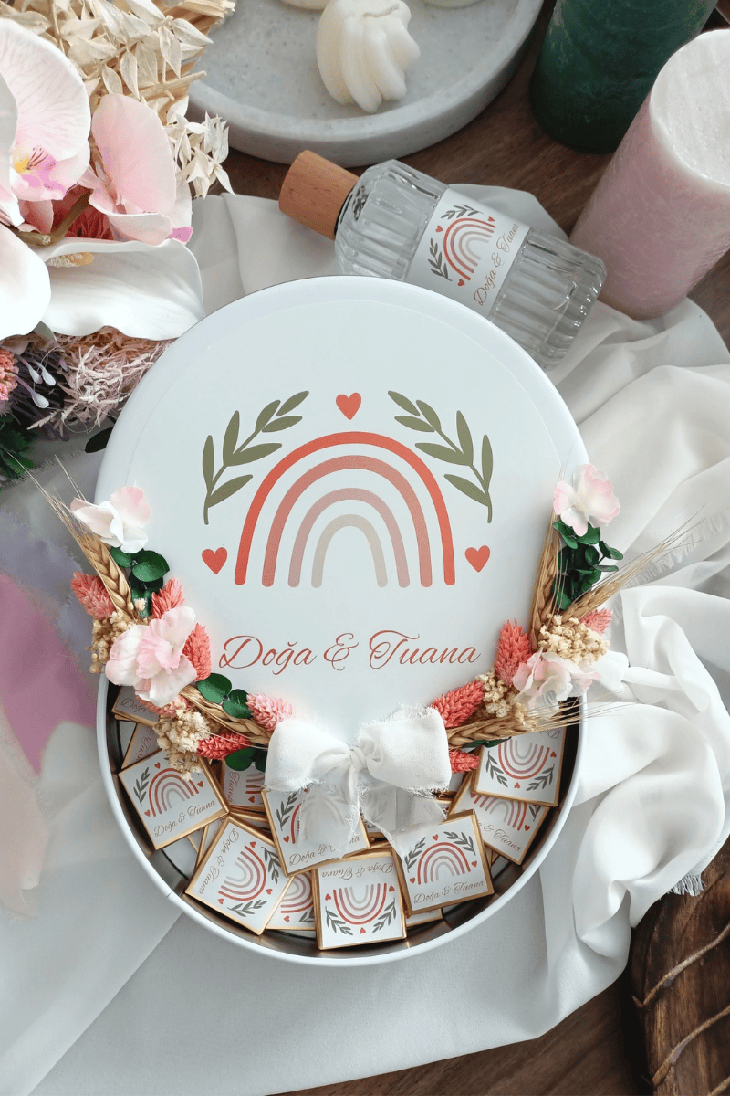 Çiçek süslemeli metal kutuda sunulan