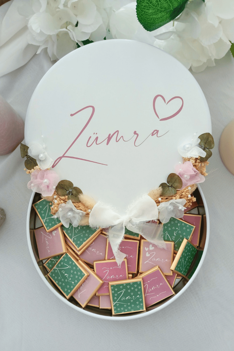 Çiçek süslemeli metal kutuda sunulan