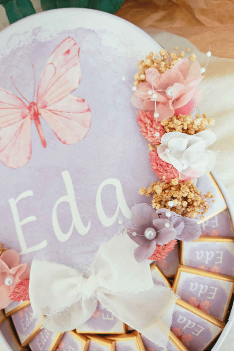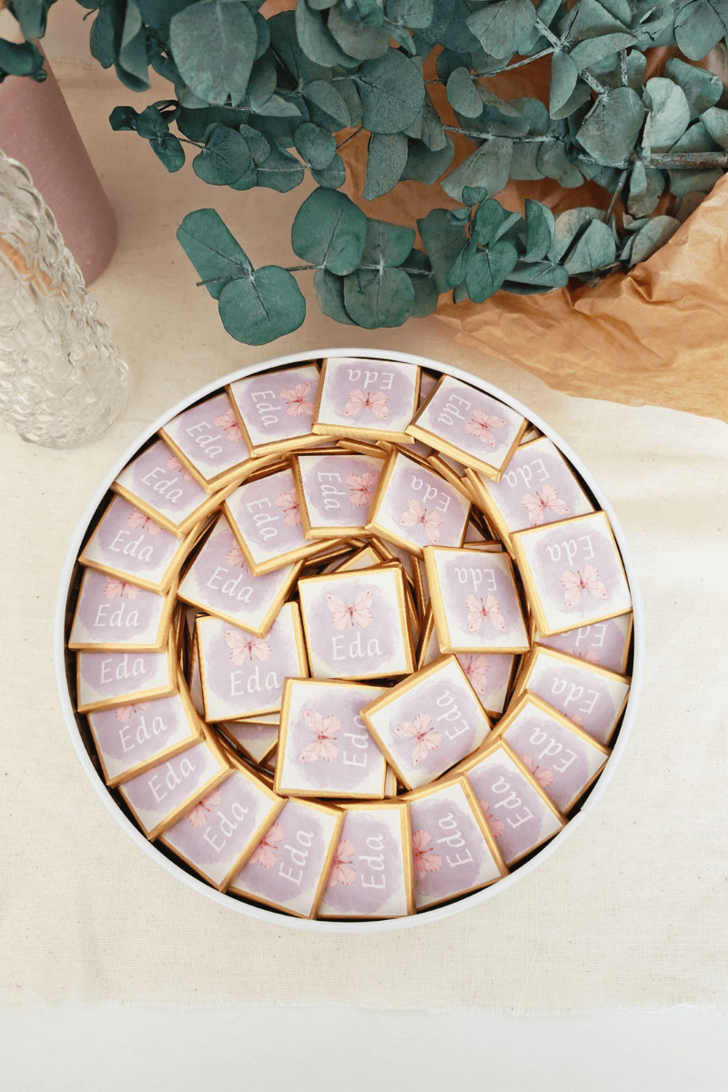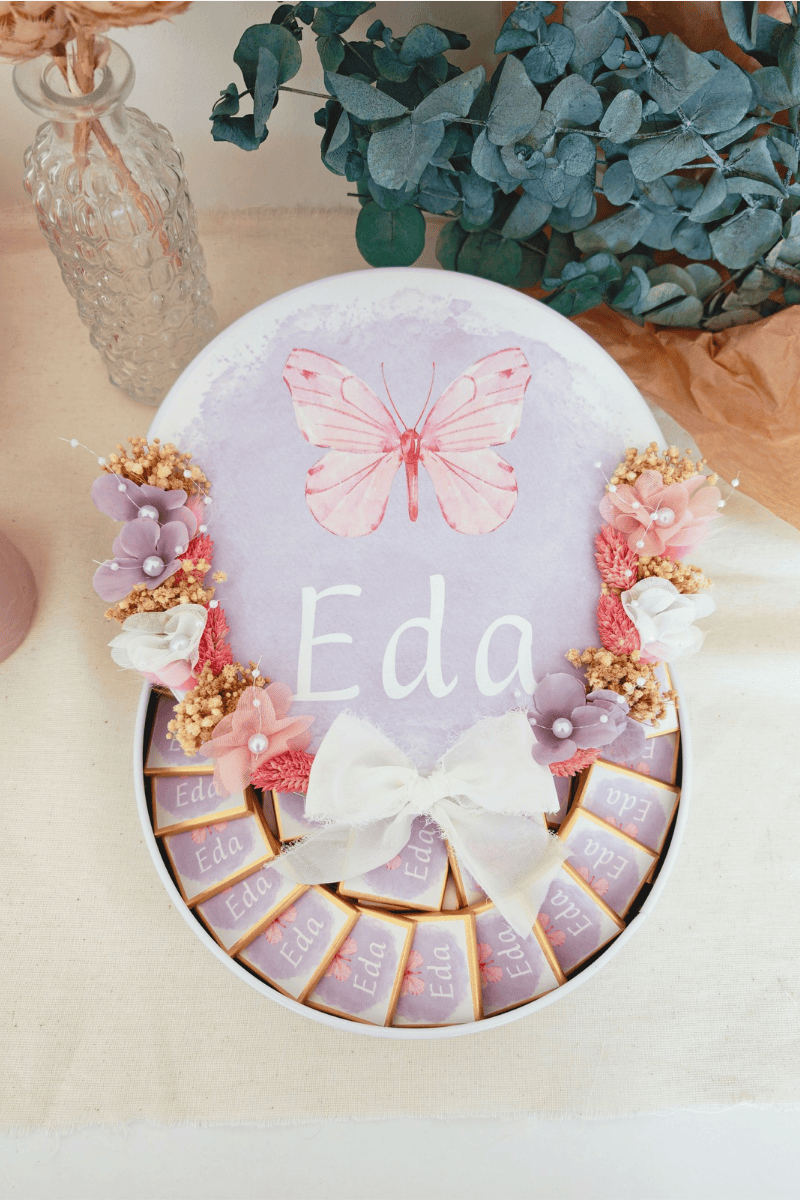 Çiçek Süslemeli Metal Kutuda 100' lü Madlen Çikolata