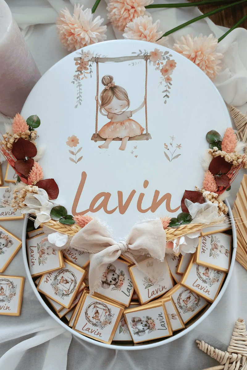 Çiçek süslemeli metal kutuda sunulan