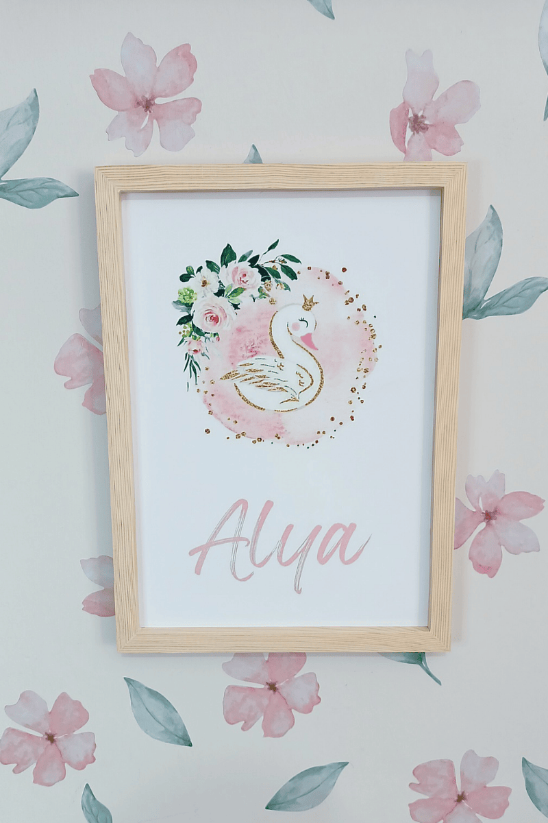 Kuğu Tasarımlı Kız Bebek Kapı Süsü / Pano