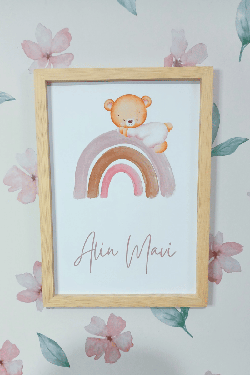 Gökkuşağı - Ayıcık Tasarımlı Kız Bebek Kapı Süsü / Pano