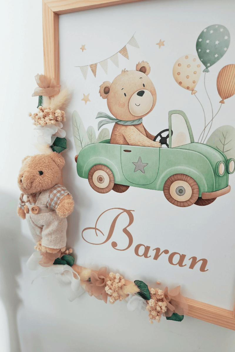 Çiçek Süslemeli - Peluş Ayıcıklı Bebek Kapı Süsü / Pano