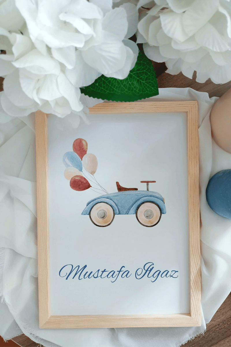 Araba Tasarımlı Erkek Bebek Kapı Süsü / Pano