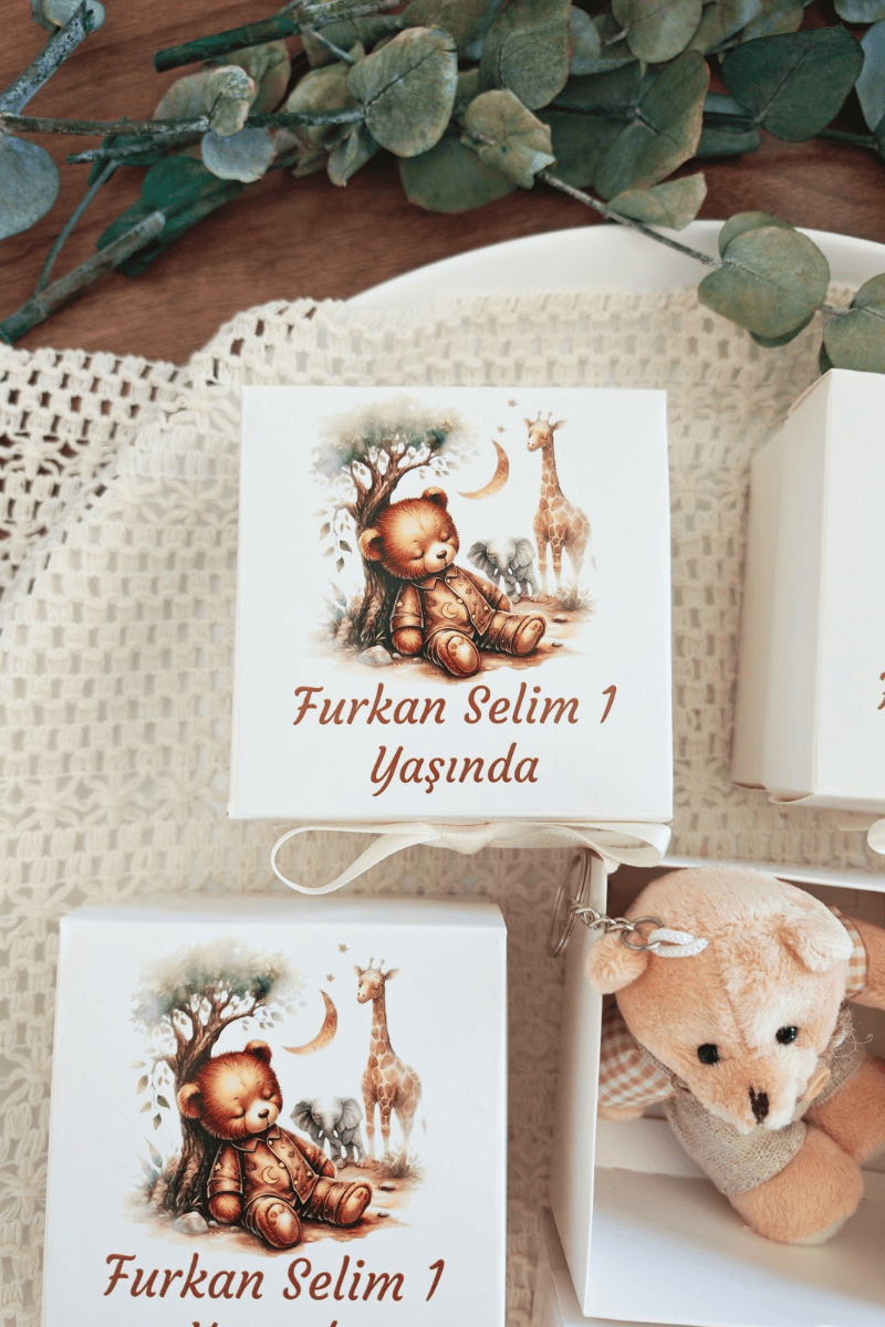 Peluş ayıcık anahtarlık beyaz kutu
